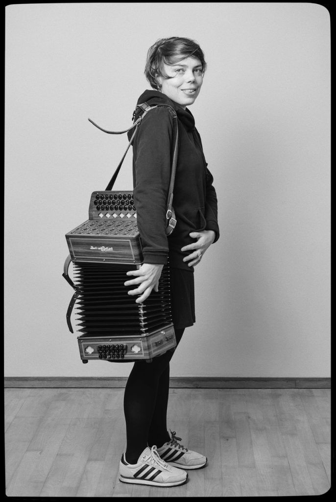 « Anne is an incredible diatonic accordion player. Nothing scares her. She knows no limits. On the contrary, she magnifies the constraints of her “small” accordion. It has been written that she “plays diatonic accordion in its chromatic version”. And Anne asserts that…”