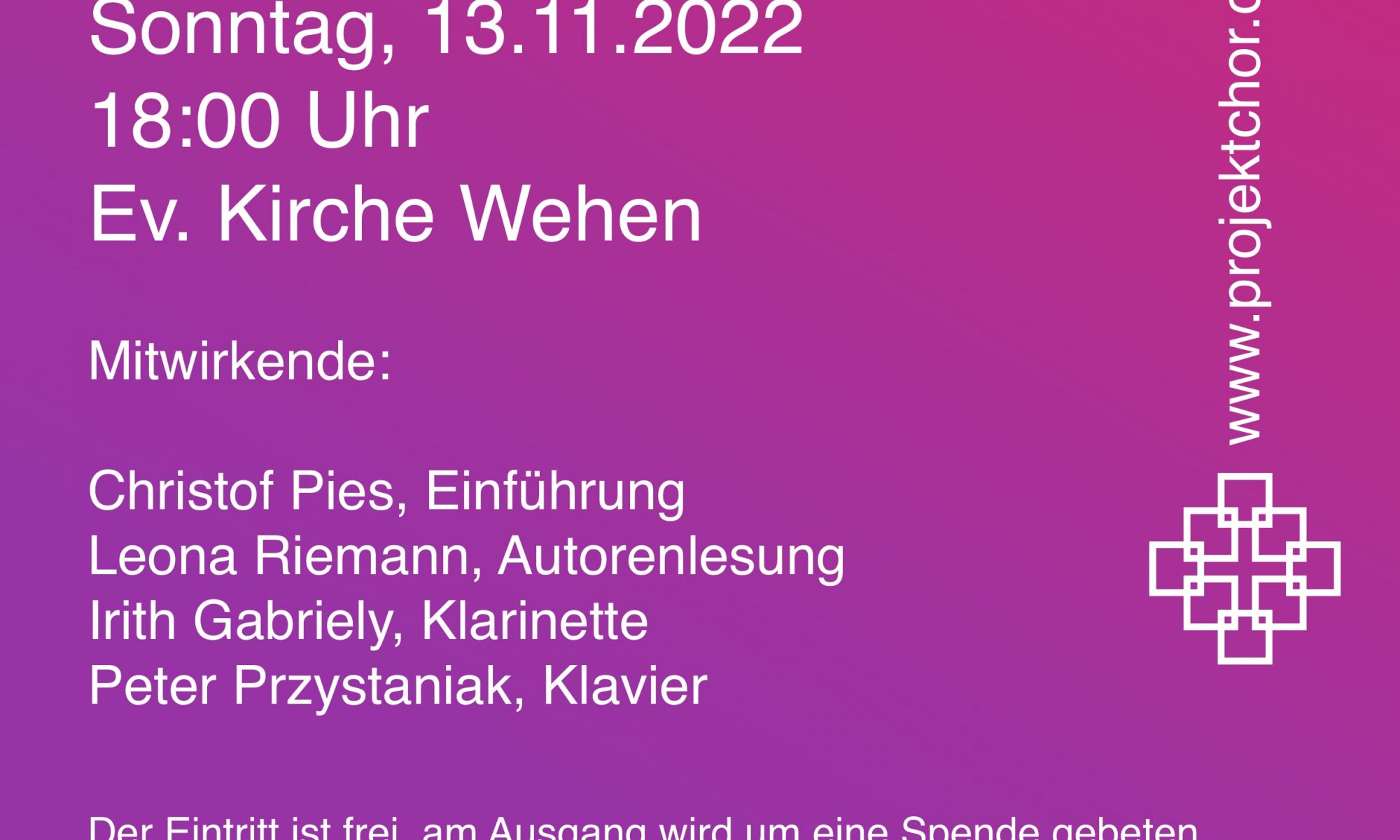 Die Ev. Kirchengemeinde Wehen veranstaltet dieses Konzert in Kooperation mit der Projektgruppe Erinnerungskultur Taunusstein.